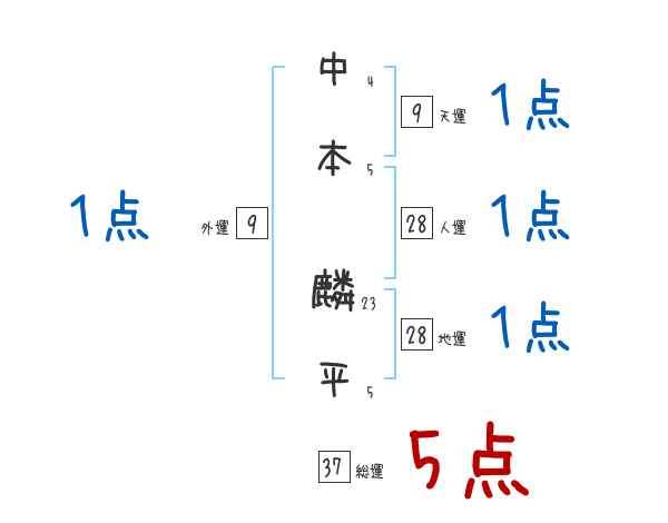 中本麟平さんの画数の鑑定結果