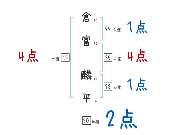 倉富麟平さんの画数の鑑定結果