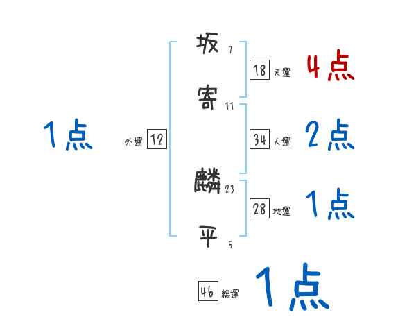 坂寄麟平さんの画数の鑑定結果