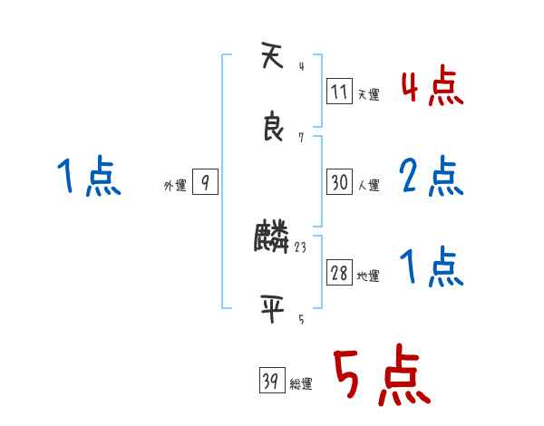 天運![]() | 天良麟平さんの天運は11画の4つ星!着実に富や地位を得る幸運な人生。 家系が持つ宿命的な運勢を表します。祖先から受け継いだ苗字ですので自分の力が及びません。家柄を象徴します。 |