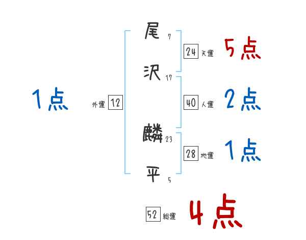 尾沢麟平さんの画数の鑑定結果