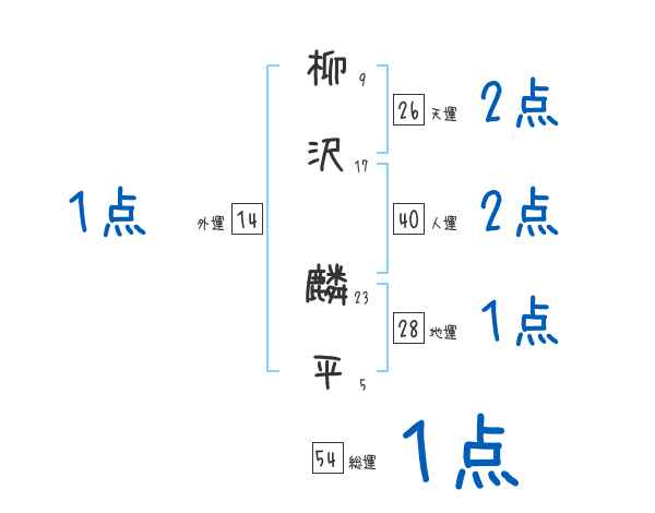 柳沢麟平さんの画数の鑑定結果