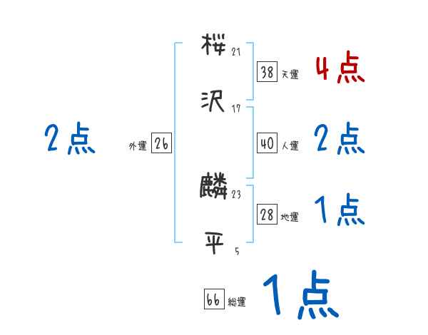 桜沢麟平さんの画数の鑑定結果