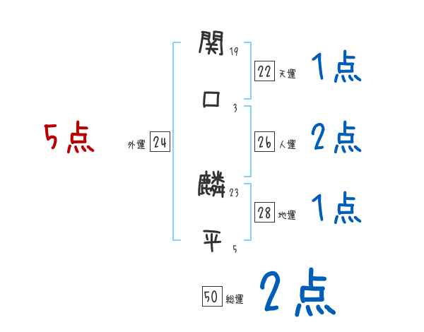 関口麟平さんの画数の鑑定結果
