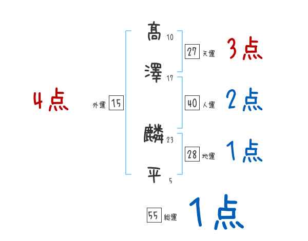 髙澤麟平さんの画数の鑑定結果