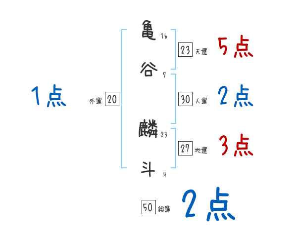 亀谷麟斗さんの画数の鑑定結果