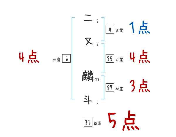 二又麟斗さんの画数の鑑定結果