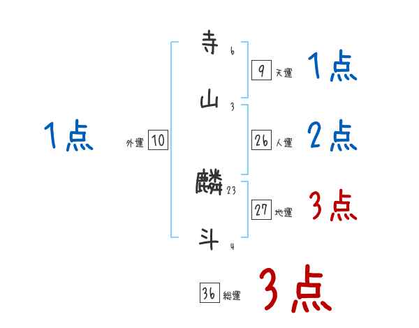 寺山麟斗さんの画数の鑑定結果