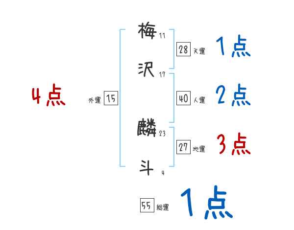 梅沢麟斗さんの画数の鑑定結果