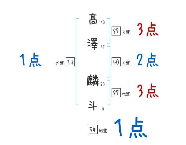 髙澤麟斗さんの画数の鑑定結果