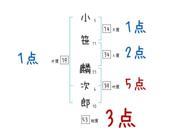 小笹麟次郎さんの画数の鑑定結果