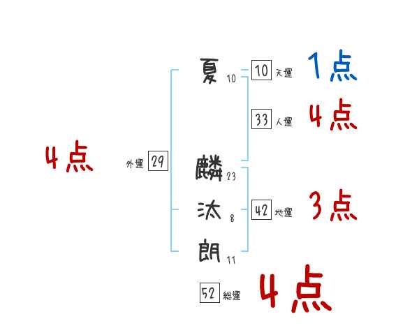 夏麟汰朗さんの画数の鑑定結果