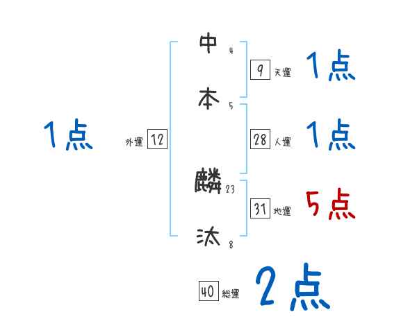 天運![]() | 中本麟汰さんの天運は9画の1つ星!消極的で才能を発揮することが苦手なことも。周りの意見に耳を傾けましょう。 家系が持つ宿命的な運勢を表します。祖先から受け継いだ苗字ですので自分の力が及びません。家柄を象徴します。 |
