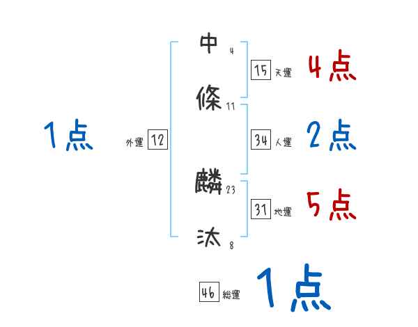 中條麟汰さんの画数の鑑定結果