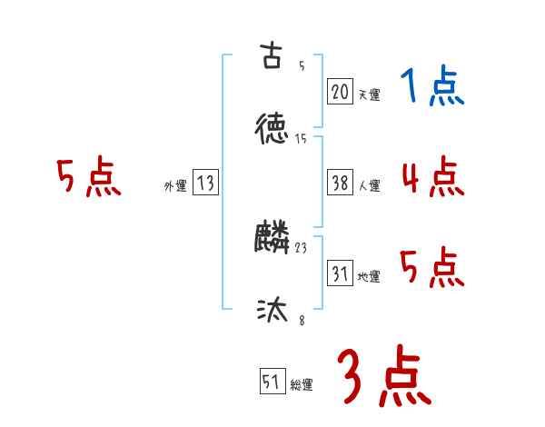 古徳麟汰さんの画数の鑑定結果