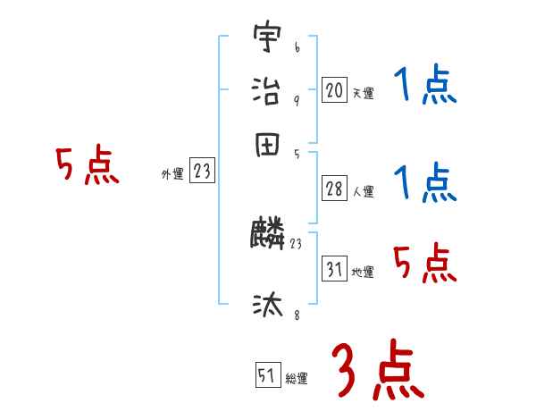 宇治田麟汰さんの画数の鑑定結果