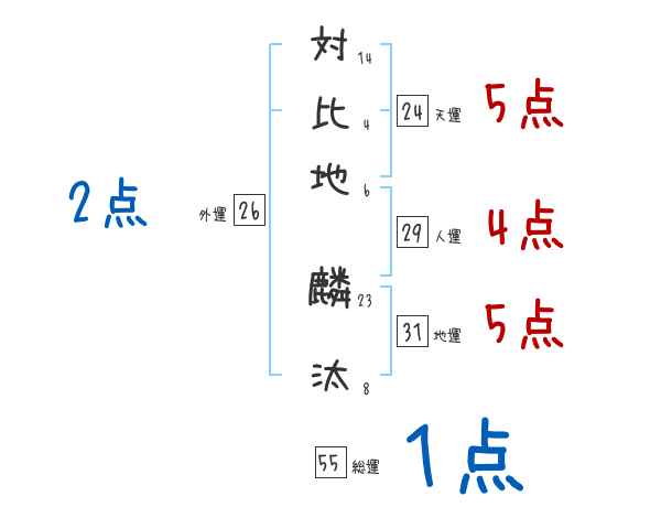 対比地麟汰さんの画数の鑑定結果