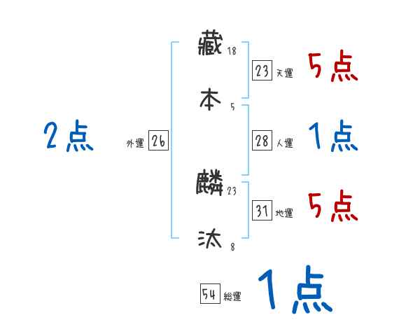 藏本麟汰さんの画数の鑑定結果