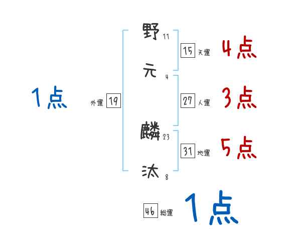 野元麟汰さんの画数の鑑定結果