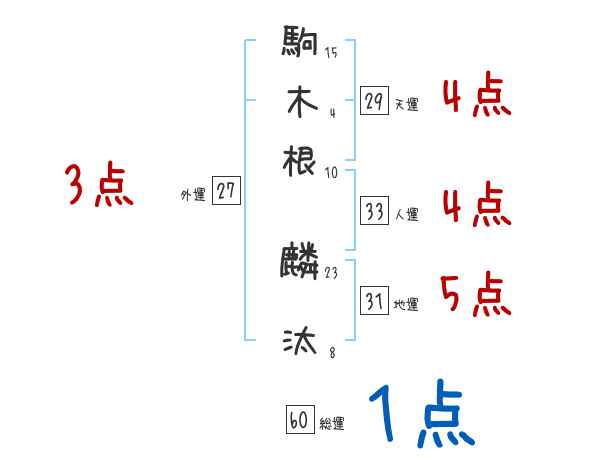 駒木根麟汰さんの画数の鑑定結果