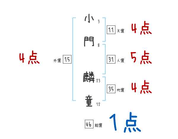 小門麟童さんの画数の鑑定結果
