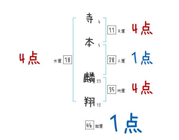 寺本麟翔さんの画数の鑑定結果
