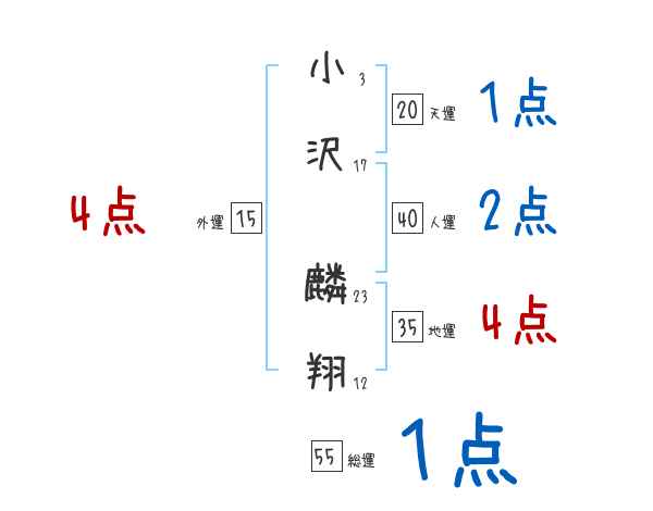 小沢麟翔さんの画数の鑑定結果