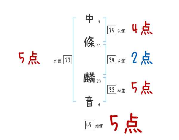 中條麟音さんの画数の鑑定結果