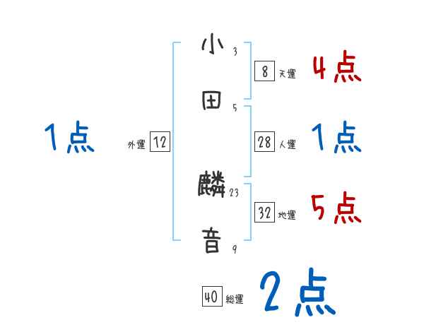小田麟音さんの画数の鑑定結果