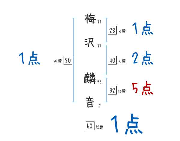 梅沢麟音さんの画数の鑑定結果