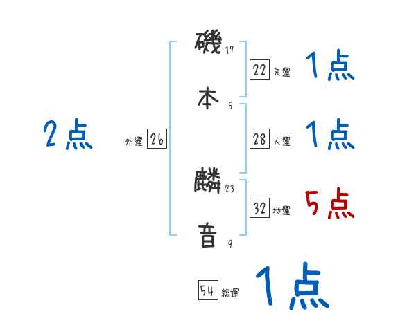 磯本麟音さんの画数の鑑定結果