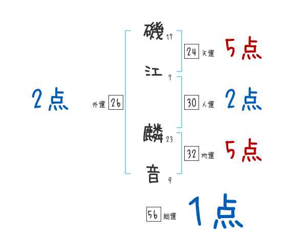 磯江麟音さんの画数の鑑定結果