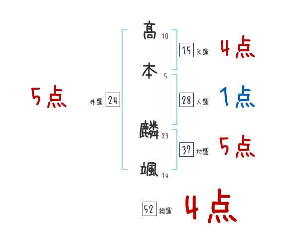 髙本麟颯さんの画数の鑑定結果
