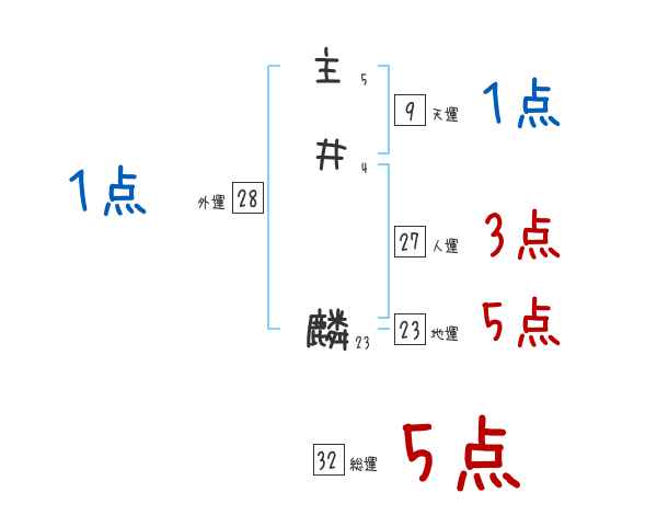主井麟さんの画数の鑑定結果