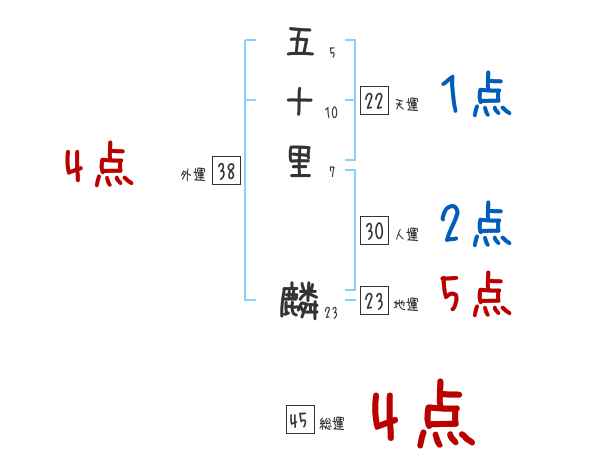 五十里麟さんの画数の鑑定結果
