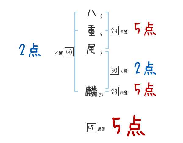 総運![]() | 八重尾麟さんの総運は47画の5つ星!実力が開花し発展する円満な人生。財に恵まれる。 あなたの人生を表す1番重要な運勢です。生涯を通じて影響する総合運となり、主に50歳以降の晩年期に影響を及ぼします。 |