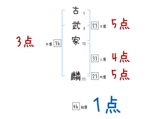 古武家麟さんの画数の鑑定結果