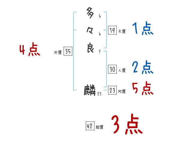 多々良麟さんの画数の鑑定結果