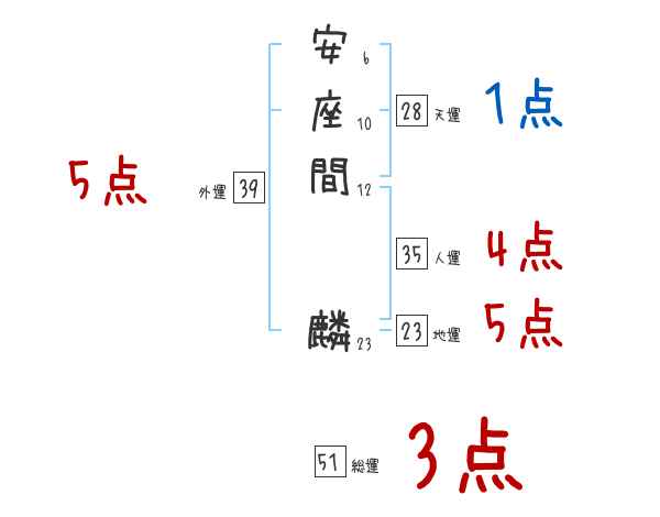 安座間麟さんの画数の鑑定結果