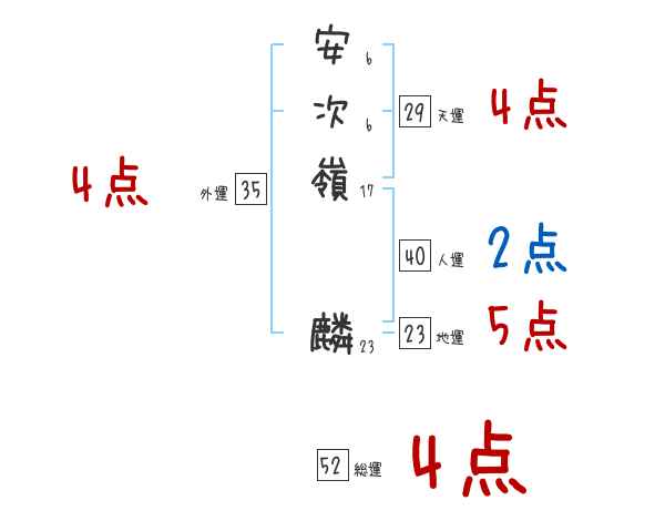 安次嶺麟さんの画数の鑑定結果