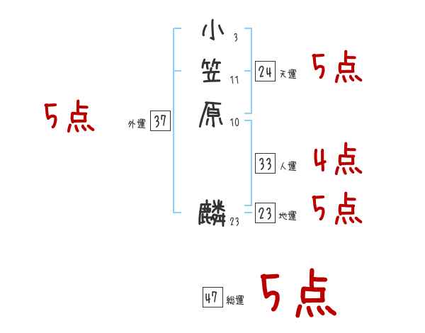 小笠原麟さんの画数の鑑定結果