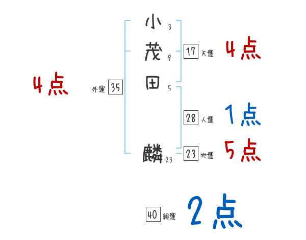 小茂田麟さんの画数の鑑定結果