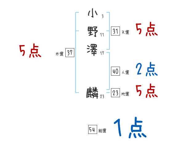 小野澤麟さんの画数の鑑定結果