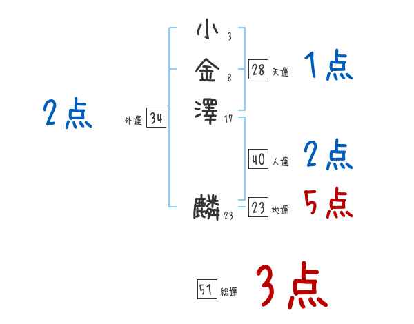 小金澤麟さんの画数の鑑定結果