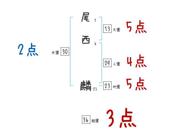尾西麟さんの画数の鑑定結果