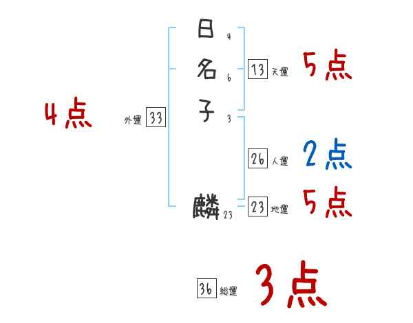 日名子麟さんの画数の鑑定結果