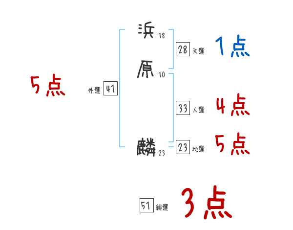 浜原麟さんの画数の鑑定結果