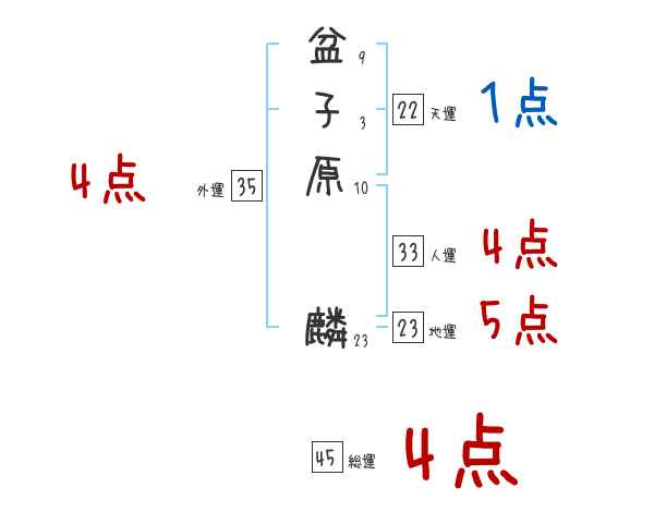 外運![]() | 盆子原麟さんの外運は35画の4つ星!温厚な性格で感受性が高い。穏和な性格で人望が厚い。 生活面を象徴する運勢です。外部から受ける影響力を表し、結婚運、家庭運や職場、環境への順応性を表します。 |