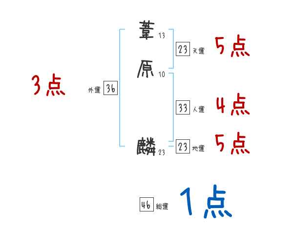 葦原麟さんの画数の鑑定結果