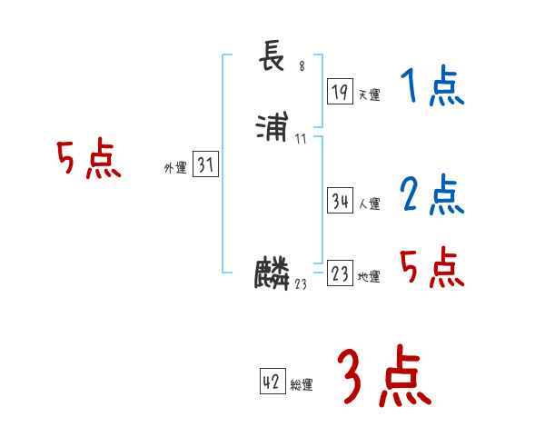 天運![]() | 長浦麟さんの天運は19画の1つ星!優れた才能を持ちますが、協調性が足りないことも。周りの人と協力する事を意識しましょう。 家系が持つ宿命的な運勢を表します。祖先から受け継いだ苗字ですので自分の力が及びません。家柄を象徴します。 |